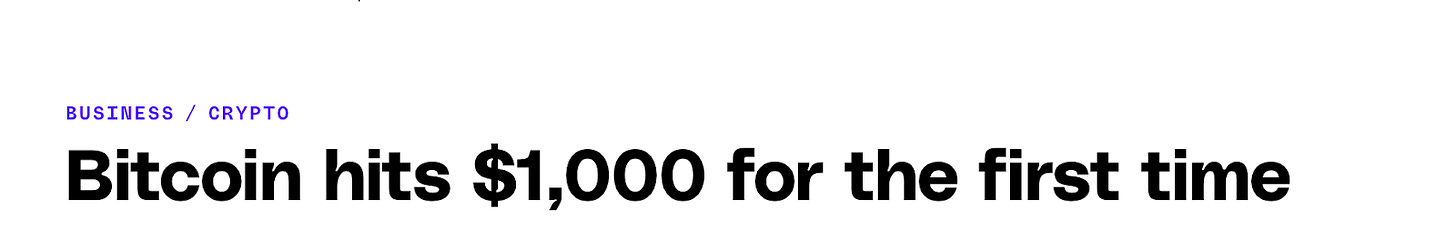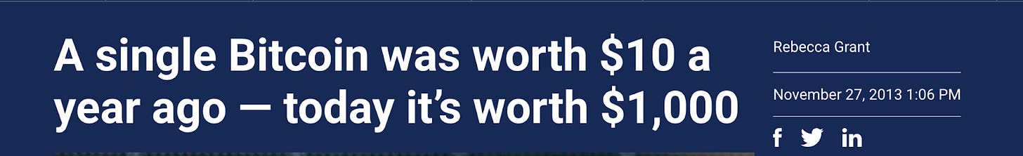If memory serves me right, BTC was trading around $7. If I’d followed through, I’d have approximately 143 BTC — or about $4 million.