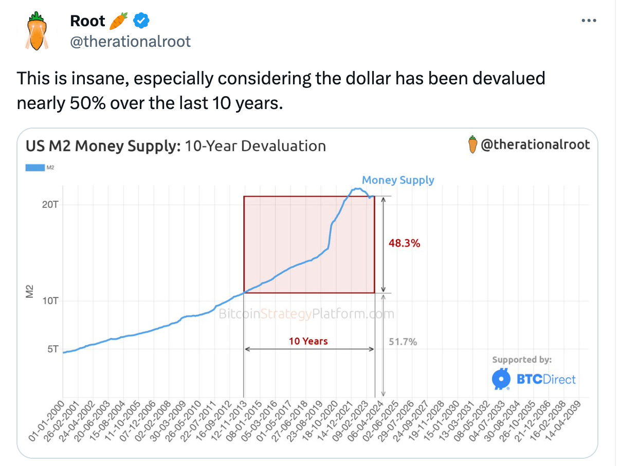 Combine massive devaluation with a shrinking BTC supply, and you get a BTC surge with the potential to take it to $100,000 and then to $1,000,000.