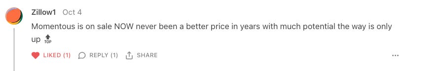 Just look at what this subscriber had to say about Momentus Inc. (Nasdaq: MNTS 0.00%↑), one of our Silver Tier stocks: