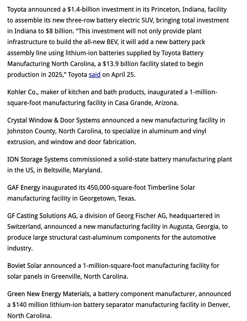 The U.S. Is Setting Up to Be the World’s Factory 🏭 Again