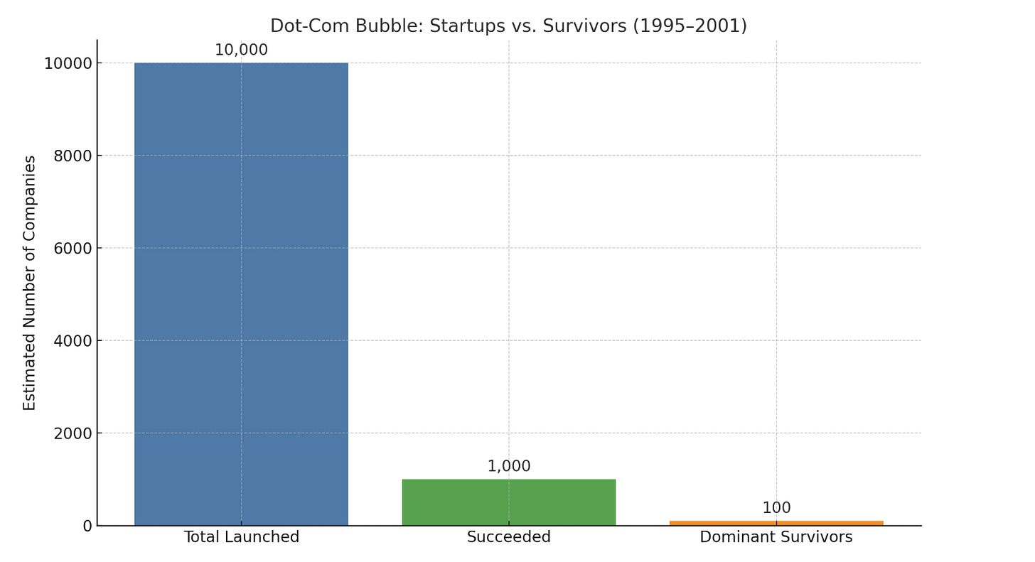 And just 1% or 100 survived — think companies like Facebook, Google, PayPal, and eBay.
